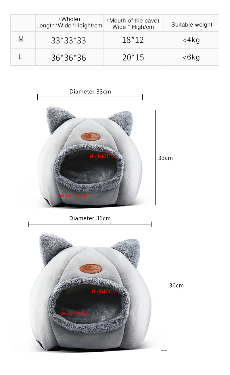 Warm Cushioned Cave House Bed for Cats